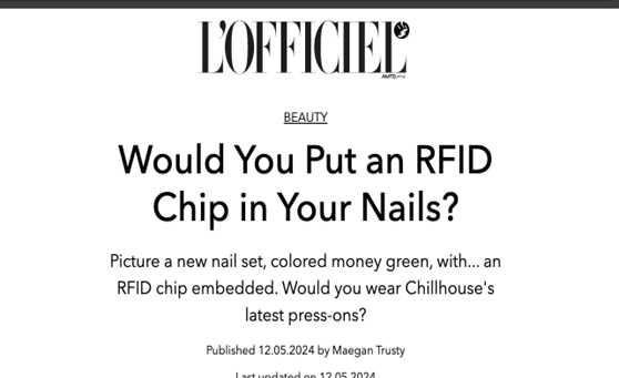 Cash App partnered with Chillhouse to create Cash in Hand, a limited-edition set of Chillhouse's award-winning press-on nails embedded with an RFID chip. One tap of your thumbnail opens Cash App's payment pad, making it the first manicure that can send money. The collab launched with a PR event in NYC and is available online at Chillhouse.