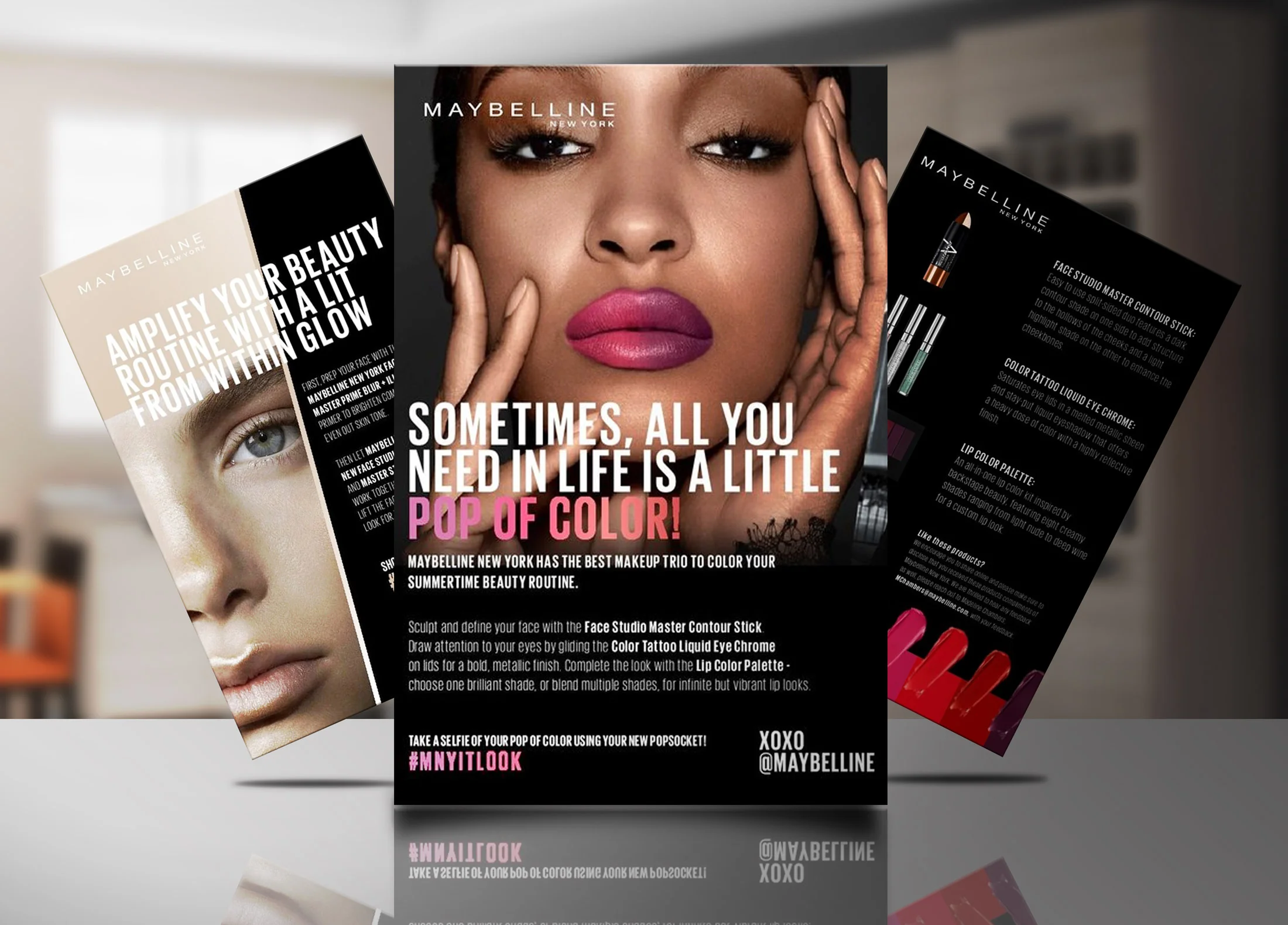 Just a few of the print mailers I did for Maybelline New York that were distributed to one-hundred top beauty bloggers as part of their monthly influencer program.